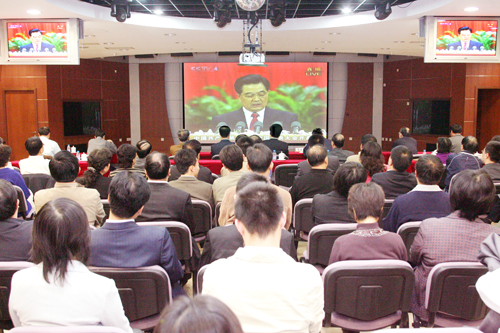 ËäÈ»ÒòΪÈËԱ̫¶à¶øÂÔÏÔÓµ¼·£¬µ«Õû¸ö»á³¡È´·Ç³£°²¾²£¬¾ÍÁ¬Ã¿·ê»áÒéÄÑÃâÎËÎË×÷ÏìµÄÊÖ»úËÆºõÒ²¾øÁËÉù¡£´ó¼Ò¶¼ÔÚÈÏÕæµØÇãÌý£¬ÓеÄÏêϸµØ×ö×żÇ¼£¬ÓеĻ¹Ê±²»Ê±µØ½«Éí×ÓÇáÇá̽Æð£¬ÉúÅ´í¹ýµçÊÓÀï´«³öµÄÖ»ÑÔÆ¬Óï¡­¡­10ÔÂ15ÈÕÉÏÎ磬Öк˼¯ÍŹ«Ë¾µ³×é³ÉÔ±¡¢¸±×ܾ­ÀíËïÓÖÆæ£¬µ³×é³ÉÔ±ÍõÉ­£¬ÒÔ¼°ÀÏÁìµ¼ÕԺꡢÀîÖÒÁ¼¡¢Ç®¸£Ô´µÈÓ뼯ÍŹ«Ë¾×ܲ¿¡¢µµ°¸¹Ý¡¢½ðÔ­ÓËÒµ¹«Ë¾¡¢ÐÂÎÅÐû´«ÖÐÐÄ¡¢¶þ¶þÒ»¾ÖµÄ¸É²¿Ö°¹¤Ò»ÆðÊÕ¿´ÁËÖй²Ê®Æß´ó¿ªÄ»Ê½µÄÏÖ³¡Ö±²¥£¬ñöÌýÁ˺ú½õÌÎ×ÜÊé¼ÇËù×÷µÄ±¨¸æ¡£